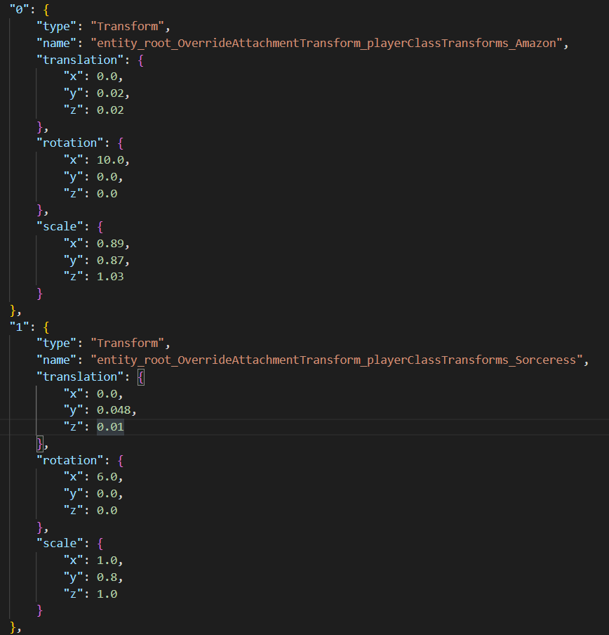예를들어 \data\hd\items\armor\helmet\cap_hat.json 파일을 열어보면, 아래처럼 아마존 착용 위치/크기, 소서리스 착용 위치/크기 등 캐릭터마다 좌표가 부여되어 있는 것을 알 수 있습니다.